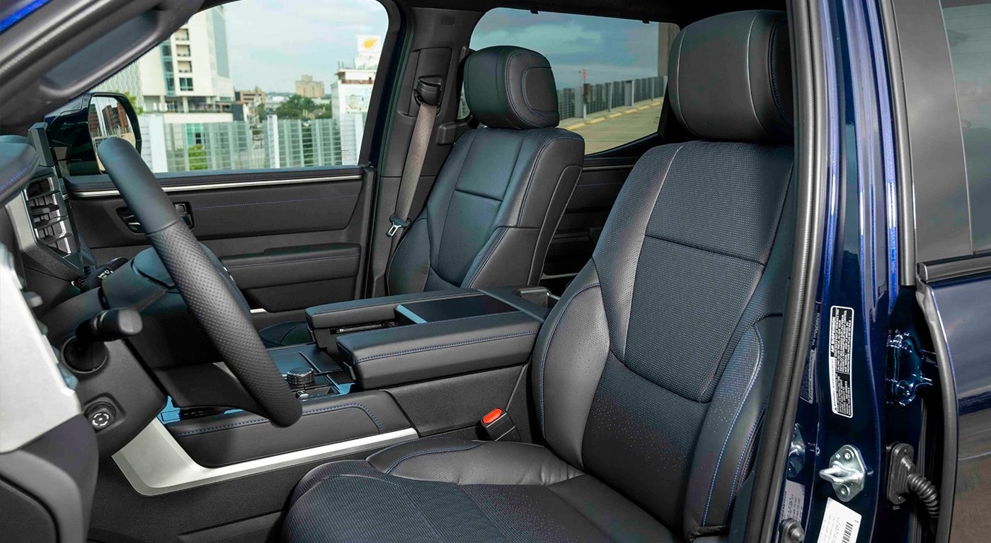 The interior sets itself even further apart from other Tundras with the inclusion of copious amounts of brown leather. According to Toyota, the design was developed in conjunction with the Texas based Saddleback Leather Company.